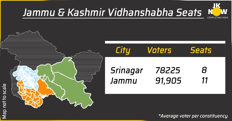 Jammu has two constituencies with over 100000 voters and two constituencies with over 90000 voters.
